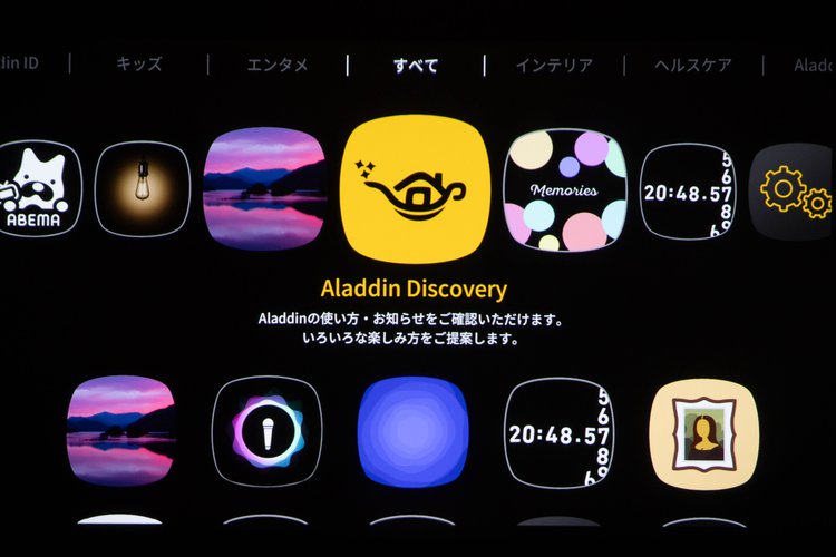 Aladdin Marcaのホーム画面。アプリのアイコンが並ぶ