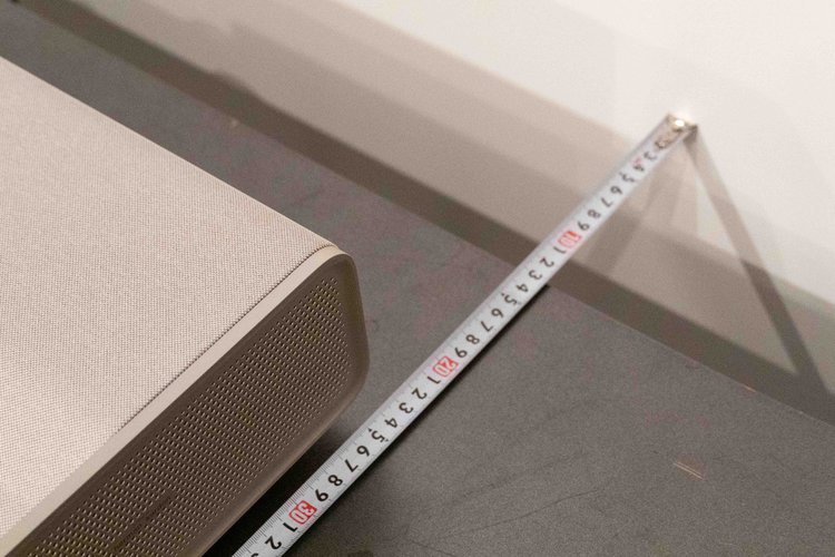 実際に測ってみたが、プロジェクター本体から投写面まで24cmで100インチが出力できた