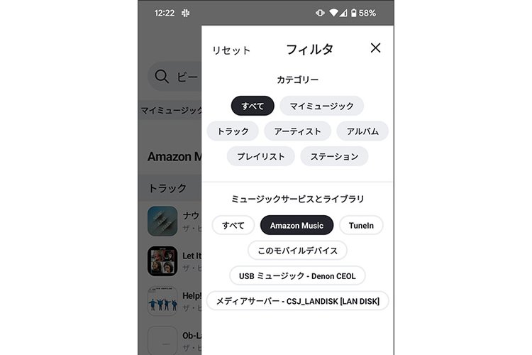 HOME > レビュー > レビュー記事一覧 進化のポイントは? 何が、どう便利になった? 使いやすさに驚愕! マランツ/デノン「HEOS」機能の「過去最大級」アップデートを速攻レビュー 編集部:小野佳希 2023年12月26日 前の写真へ 次の写真へ フィルタ機能もあるが検索対象を絞るのではなく検索結果の表示を調整する機能のようだ 前の写真へ 次の写真へ この写真の記事へ 関連リンク マランツ デノン