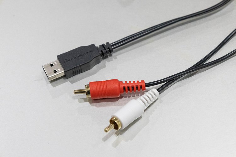 同梱される両端がUSB-AとRCAケーブルのUSBオーディオケーブル。USB-DACが内蔵されている