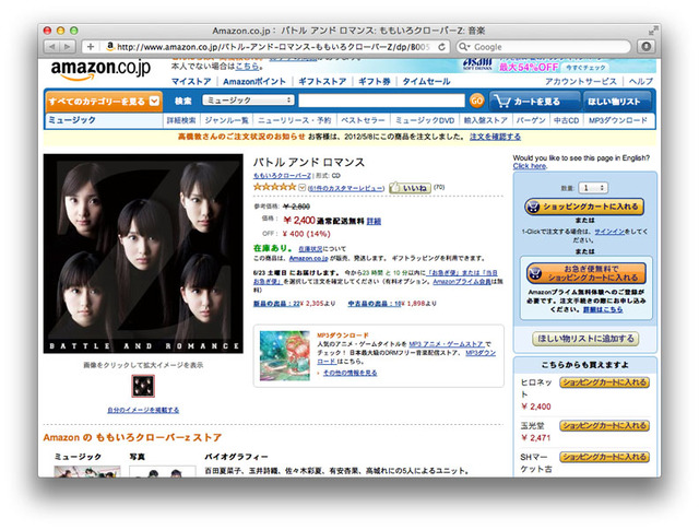 アートワークをゲットしたいCDを検索して商品ページを表示。そこにアートワークも表示されているのでそれをクリックして拡大
