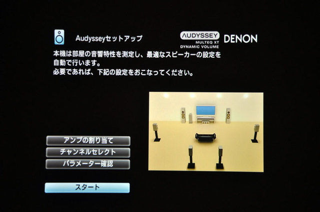 オートセットアップの導入画面。「スタート」選択で測定を開始する