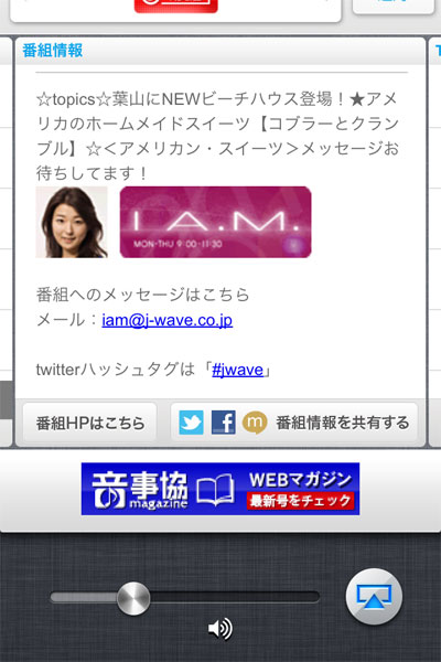 radiko.jpのアプリもAirPlay経由でアンプとスピーカーによりリスニングできる