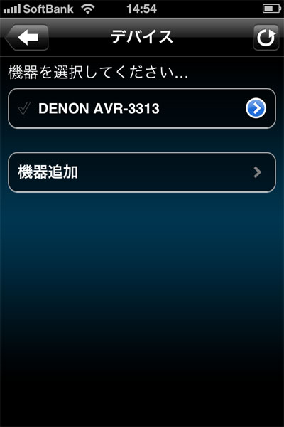 ネットワークに接続されたAVアンプなど、対応機器がリストに表示される