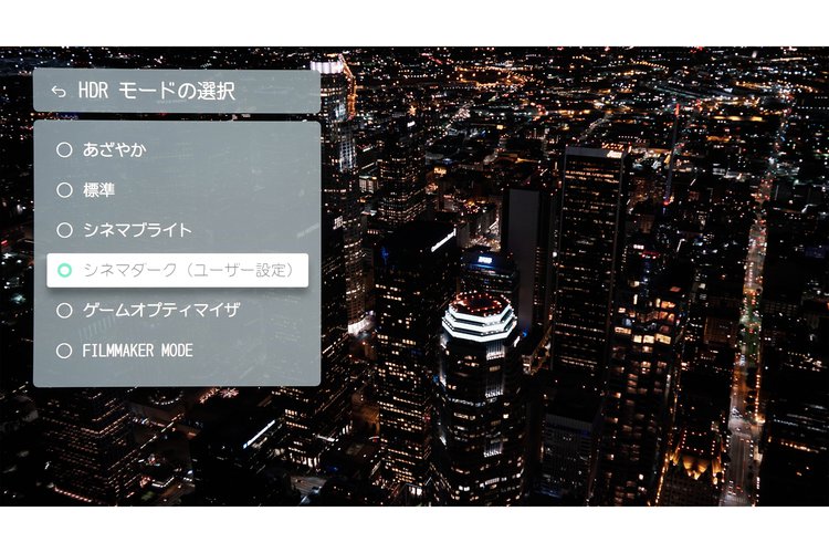 HDRフォーマットが採用された映像信号が入力された際に選択できる映像モード
