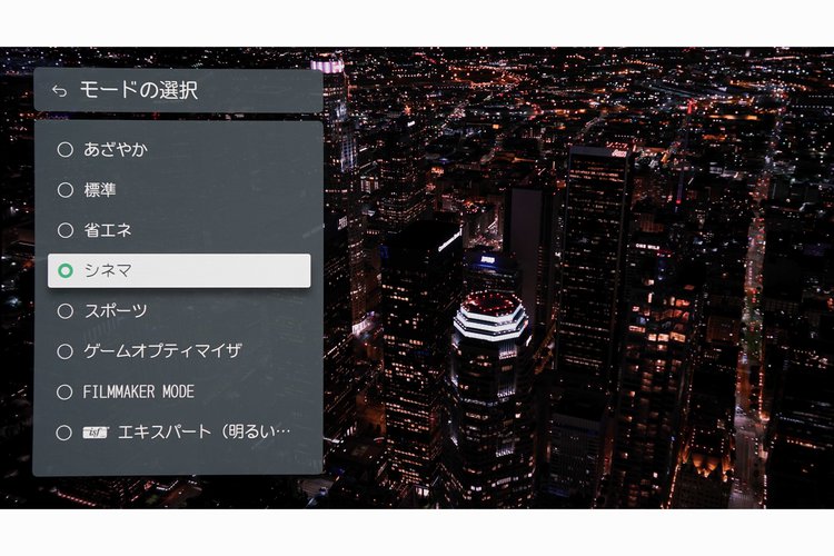 Dolby Visionの映像信号が入力された際に選択できる映像モード
