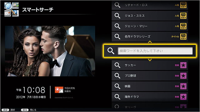 「スマートサーチ」画面。番組中のキーワードが自動抽出され、ワンボタンですぐに検索できる