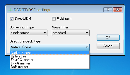 HQ PlayerのDSD周りの設定画面。こちらも「DoP」を含めていくつかの方式に対応済み