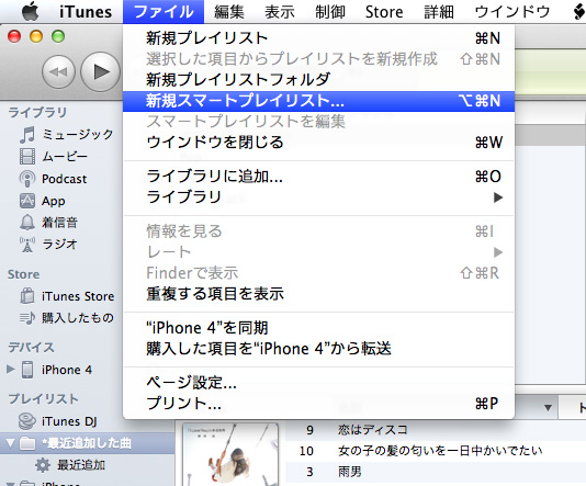 「ファイル」メニューから「新規スマートプレイリスト」を選択して作成開始