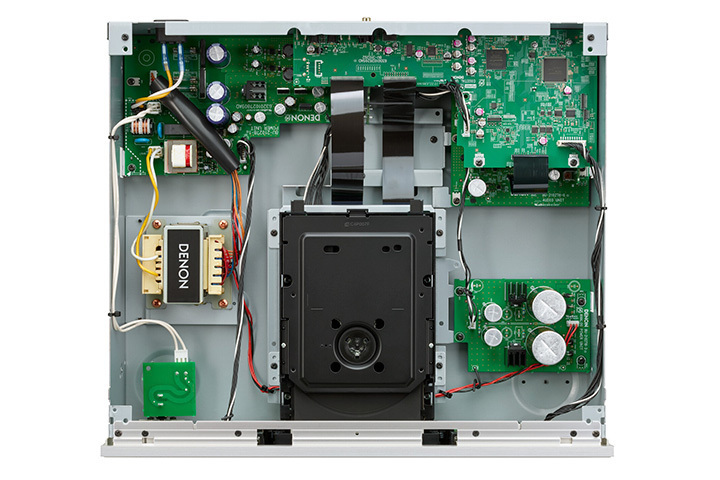 DCD-1700NEの内部。DCD-SX1 LIMITEDの設計思想を受け継いだ、ミニマム・シグナル・パス回路を搭載。デジタルオーディオ回路に4層基板、アナログオーディオ回路に2層基板を採用することで、最短経路での基板上の信号の引き回しを実現した。