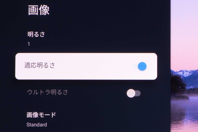 「適応明るさ」では、視聴環境の明暗に応じてプロジェクターの明るさを自動調整する