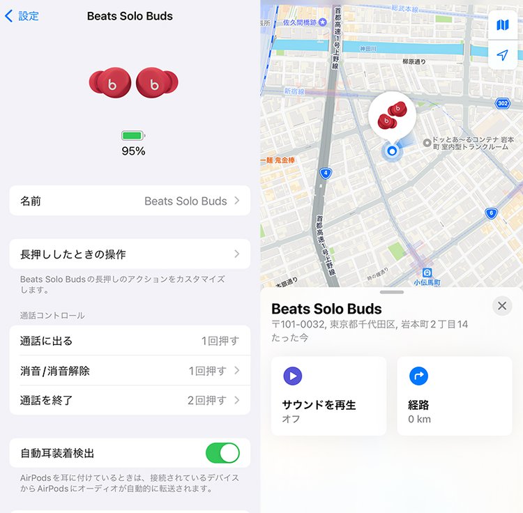 イヤホンを落とした場所を追跡できる「探す」機能もサポートし、もしもの際も安心