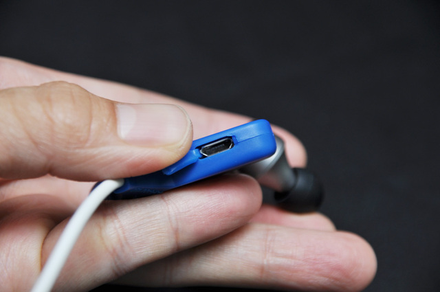 充電用のmicroUSB端子。AH-W200に採用されているケーブルによる有線リスニング機能は本機には搭載されていない
