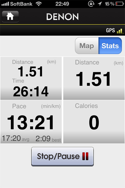 スマートフォンのGPS機能と連動して、ワークアウトの成果を計測できる「Denon Sport」アプリ