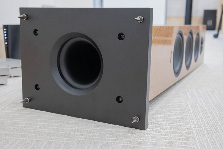 フロア型では台座の裏側にバスレフポートを設けて360度方向に放射している