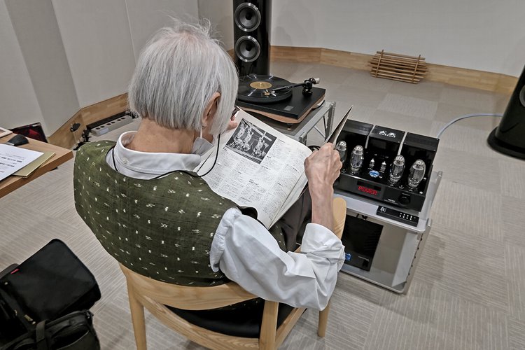 EVOLUTION MUSASHIを前に試聴中の筆者