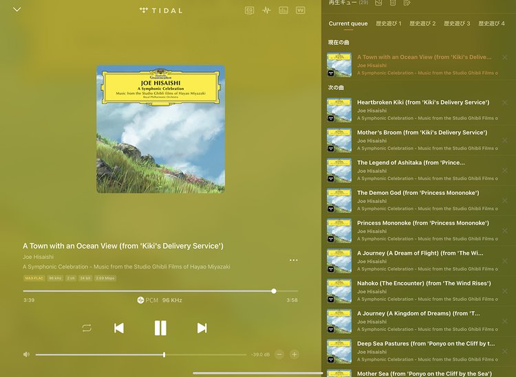 eversolo Controlの再生情報画面。画像はTIDALの音源を再生している様子で、TIDAL Maxにも対応している