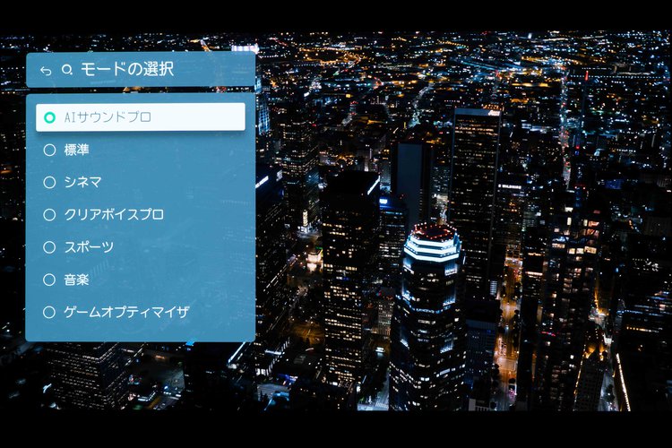 音声モードは「AIサウンドプロ」を選択して音質チェックした