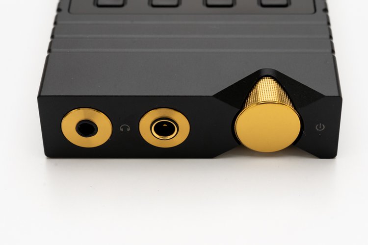 電源スイッチを兼ねたノブ、2系統のヘッドホン出力は、金メッキのおかげもあり剛健な印象