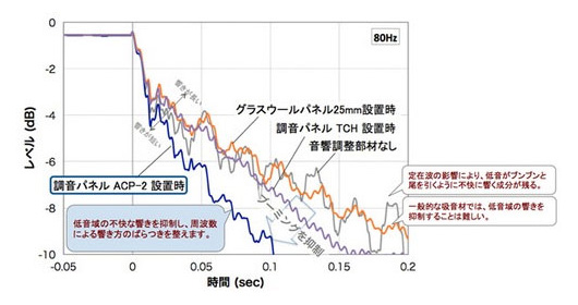 残響減衰特性に見るブーミングの抑制効果の観測例