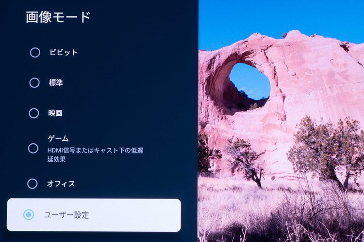 さらに映像を細かく調整したい場合は、画像モード「ユーザー設定」を選択