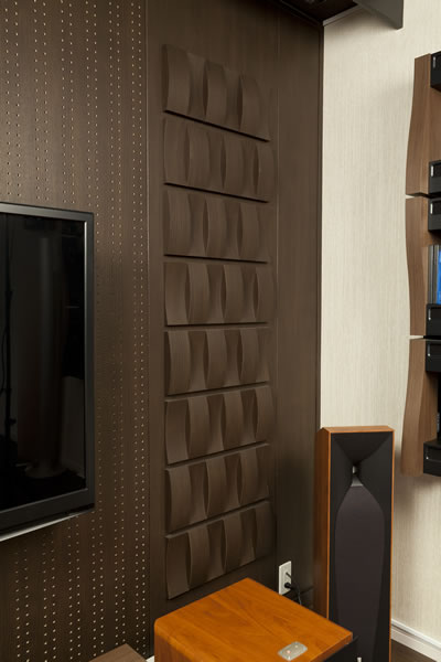 音響壁材オトカベには、反射効果を持つタイプも用意されている。写真は〈プレミアム★★★防音〉に設置されている様子