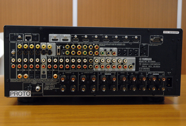 RX-A3020の背面端子部。インターフェースなどの外観は従来モデルから大きな変更点はない