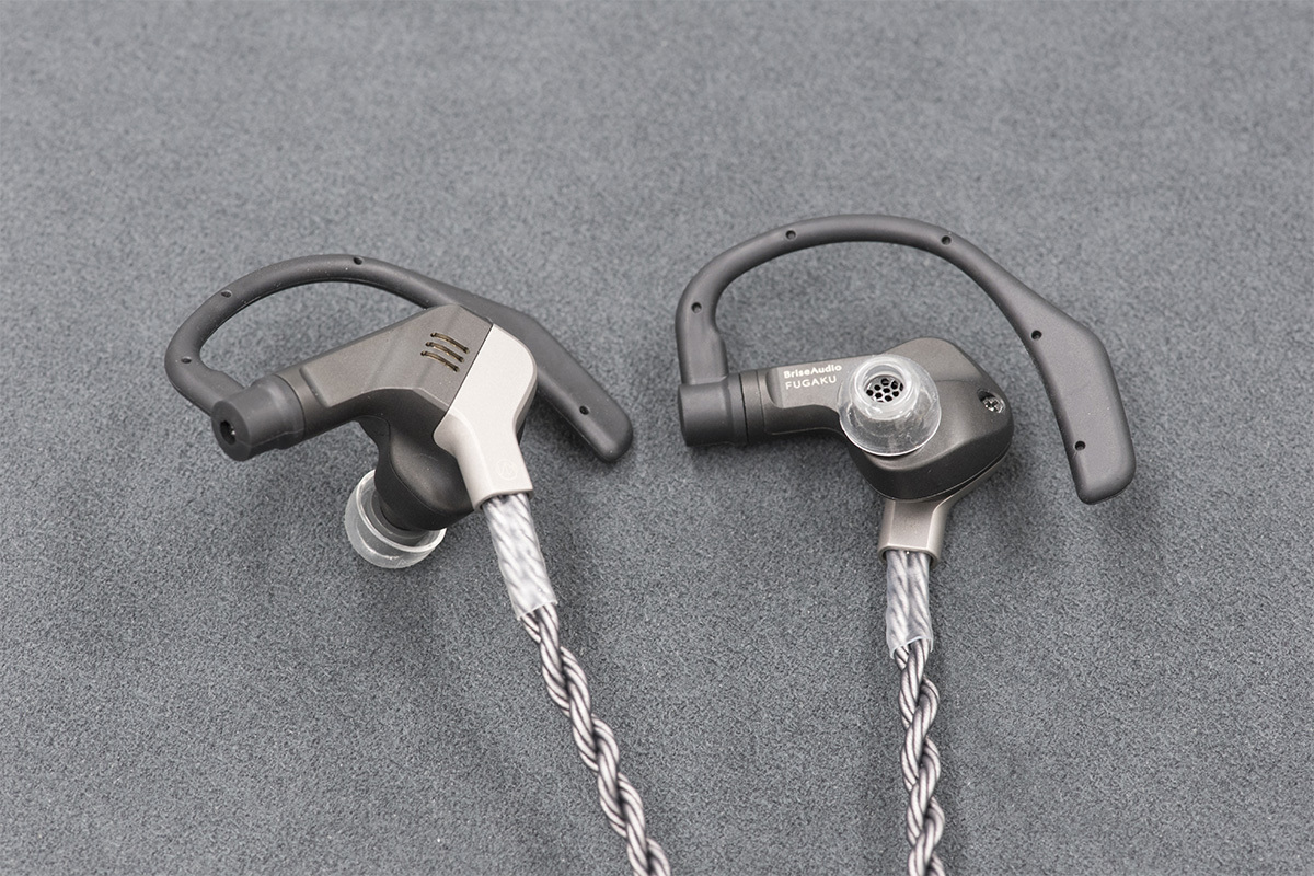 FUGAKUのイヤホン部。筐体は純チタンのツートンカラー仕上げ。イヤーハンガーも柔らかく取り回しも容易