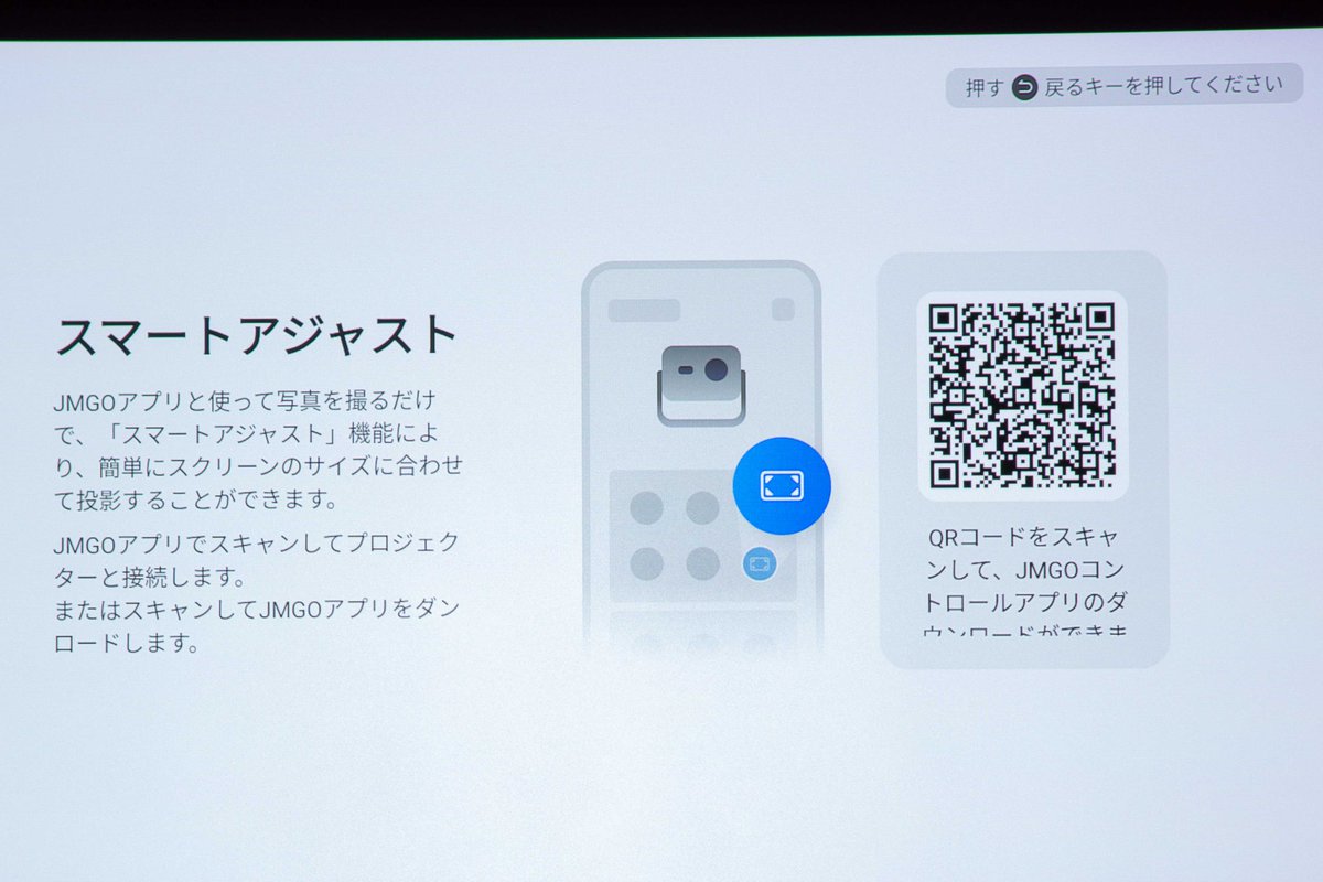アプリ「JMGO」では、手持ちのスクリーンのサイズに簡単に画面サイズを合わせられる機能も使用できる