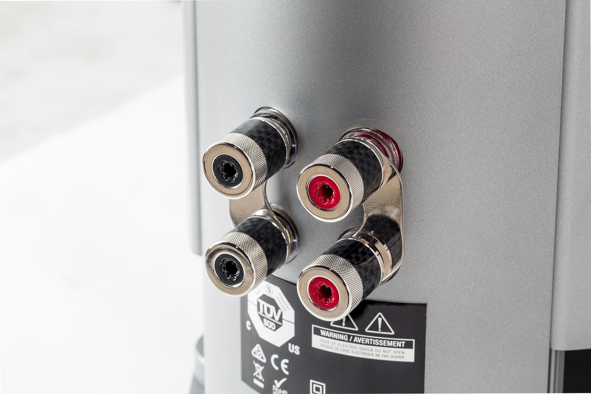 バイワイヤリング接続にも対応。トゥイーターとミッドレンジを別のアンプで鳴らすこともチャレンジしてみたいと鈴木氏も語る