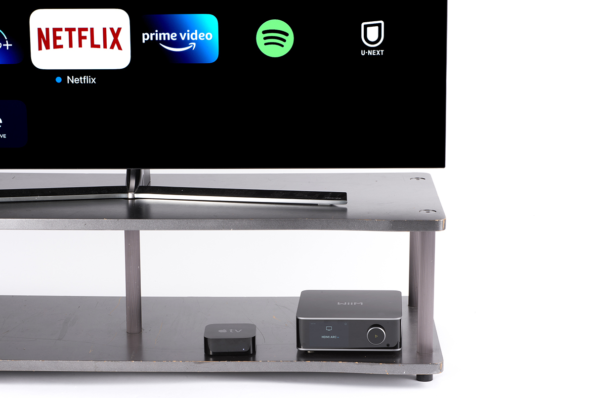 HDMI ARCでテレビと接続して、映像ソース(今回はApple TVより再生したNetflixの映画)の音声をWiiM Ultra経由でピュアオーディオシステム再生した