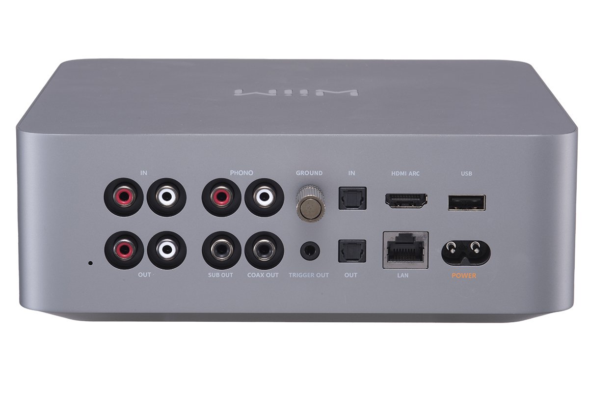 リアパネル。RCAラインの入出力のほか、フォノ入力(MM/MC対応)、HDMI ARC入力、光TOSデジタル入力、イーサネット入力も備える。出力はライン出力のほか、USB/同軸/光デジタル出力、サブウーファー出力も装備
