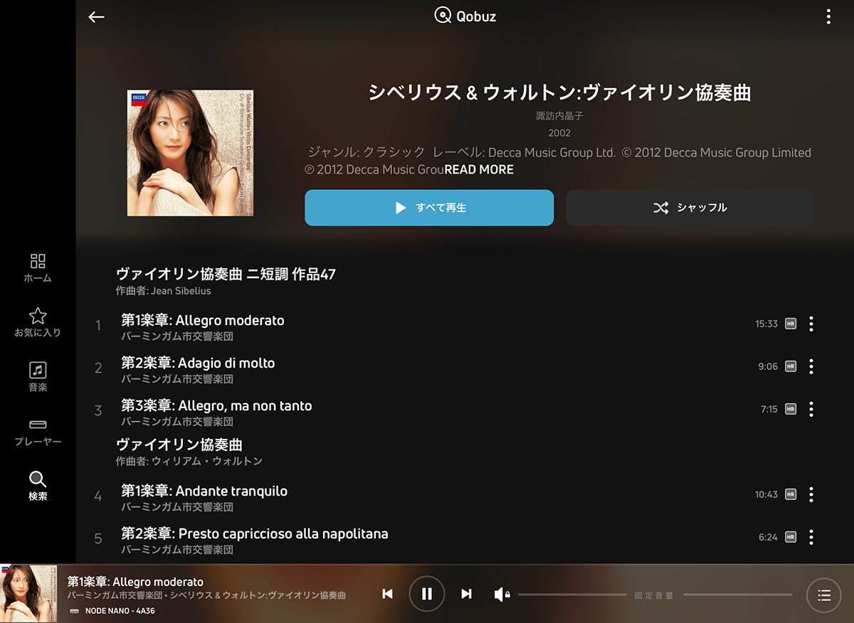 Qobuzから諏訪内晶子のアルバムを再生。もちろん日本語での検索もOK!