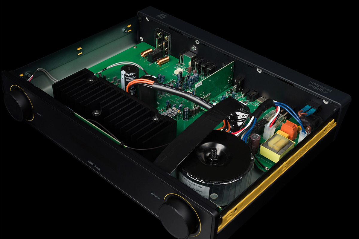 A5はAB級アナログアンプを搭載。特製の大型トロイダルトランスと、理想的なシンプルかつ最短の信号経路でデザインされた、シングルボードのレイアウトを採用する。