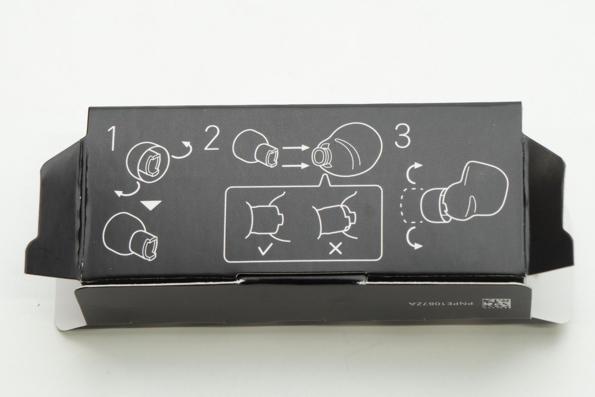 イヤーピースのボックス裏には、イヤーピースの正しい取り外し方も図解で記している