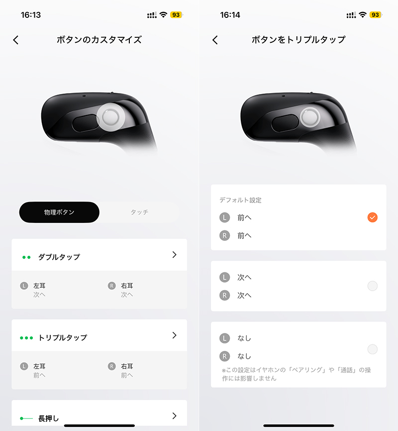 各種プッシュ操作への機能割り当てがアプリ上で行える