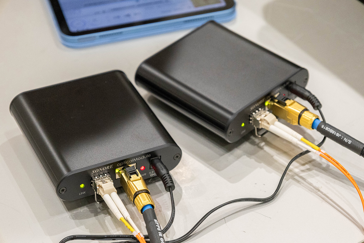 SONORE「opticalModule Deluxe V3」(88,000円/1台・税込)、SFPとLANの変換アイテムのため2台使用で試聴した