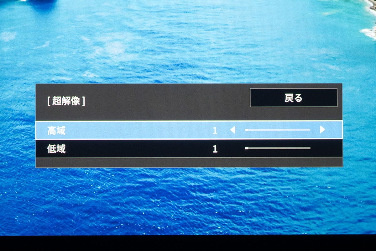 輪郭感などを調整できる映像調整メニューの「超解像」は、「イメージ強調」の設定から調整可能