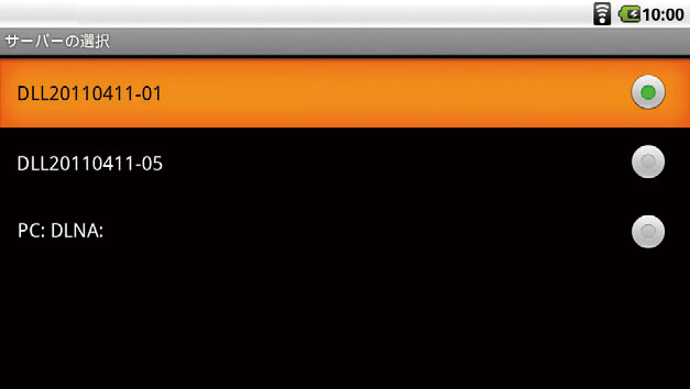 ネットワーク上にあるDLNAサーバー機器の一覧から接続する機器を選ぶ。以上でサーバーの接続設定は完了となる