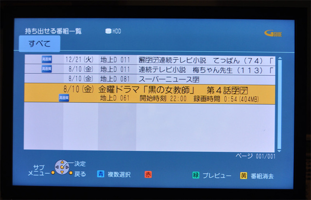 持ち出し可能な録画番組リスト