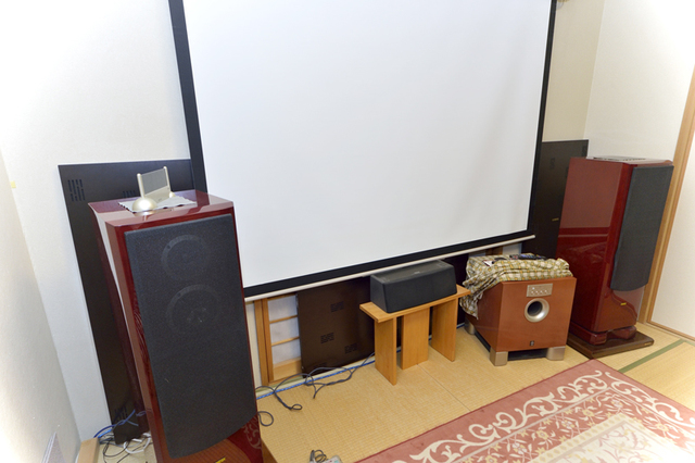 ホームシアターを楽しむためにスクリーンおろす。しかし、ACP-2Nの一部分にスクリーンが重なる形になってしまった