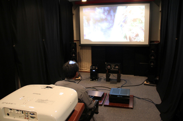 音元出版視聴室にて「アバター3D」を「TW6100W」で視聴する筆者