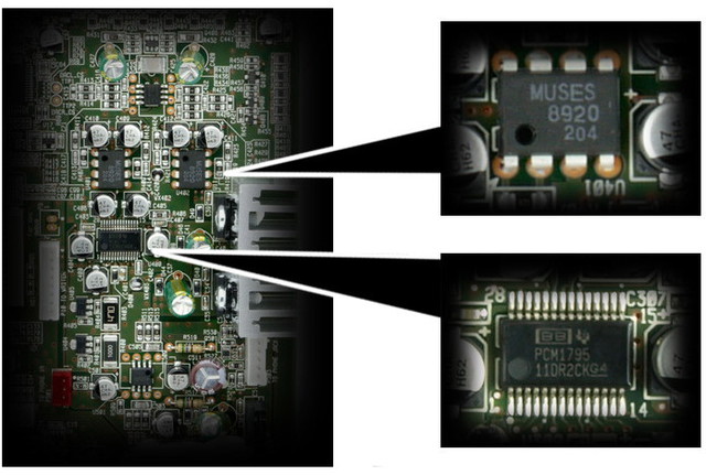 DACにはバーブラウン「PCM1795」を搭載。オペアンプは「MUSES8920」