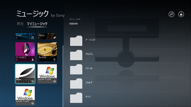 「ミュージック」アプリでnasne内の曲を表示させているところ