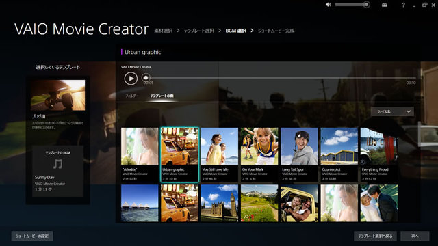 「VAIO Movie Creator」の画面