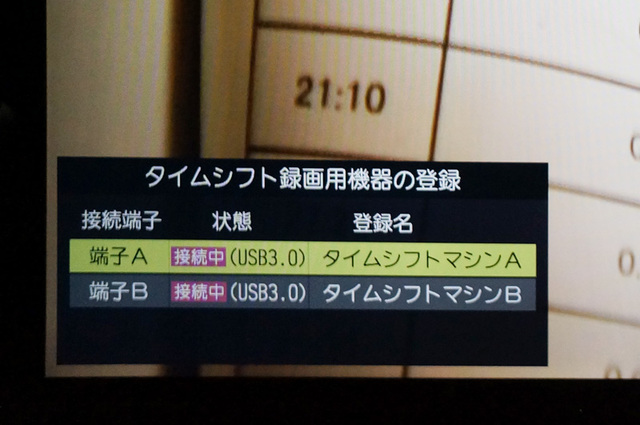 タイムシフト用HDDを端子A、端子Bに接続して、別個のHDDとして認識させる