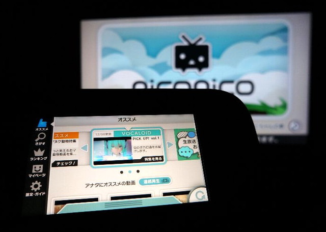「ニコニコ動画」はカテゴリ、動画選択などは手元のGamePad側で操作