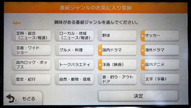 初回起動時には地域設定などのほか、興味のある番組ジャンルを登録。この情報により「おすすめ」番組などが提供される