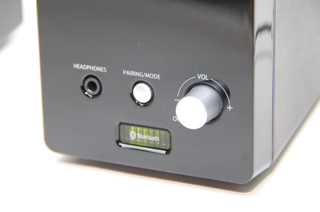 前面にはヘッドホン端子やペアリングボタン、ボリュームツマミを用意