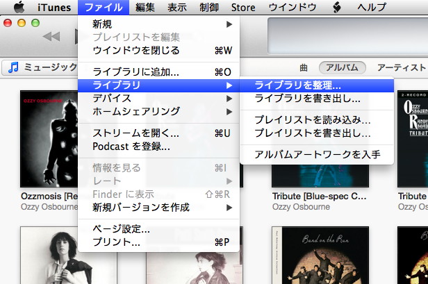 「ファイル」メニューの「ライブラリを整理」から「iTunes」ライブラリフォルダの統合整理を実行することもできる
